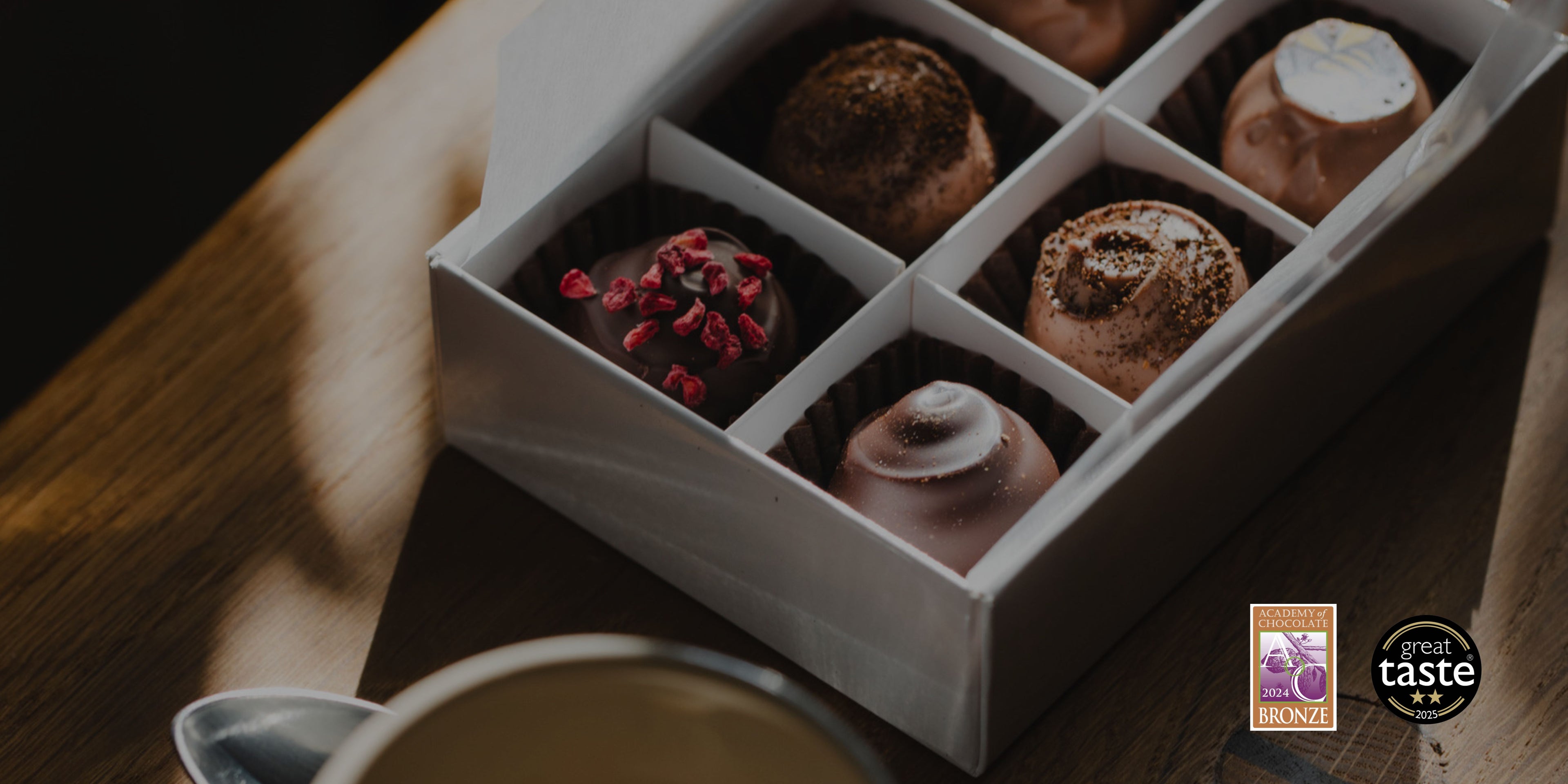 We work with carefully selected ingredients and take pride in crafting chocolates that are both simple and distinctive. Since our early days, our recipes have gone on to win awards, and our chocolates have travelled as far as France.