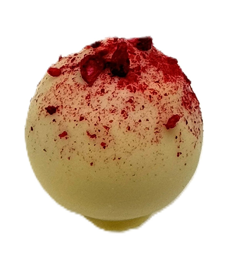 Sugar, Glucose, Butter (Milk), Muscovado Sugar, Vanilla Bean, Sea Salt), Belgian Milk & White Chocolate (Milk, Soya Lecithin), Belgian Dark Chocolate (Soya Lecithin), Castleton Raspberries, Amaretto Liqueur, Cherries, Castleton Cherry Syrup, Invert Sugar, Citric Acid, Pectin. Coloured Cocoa Butter: (E171, E172, E102, E133, E551, E132)